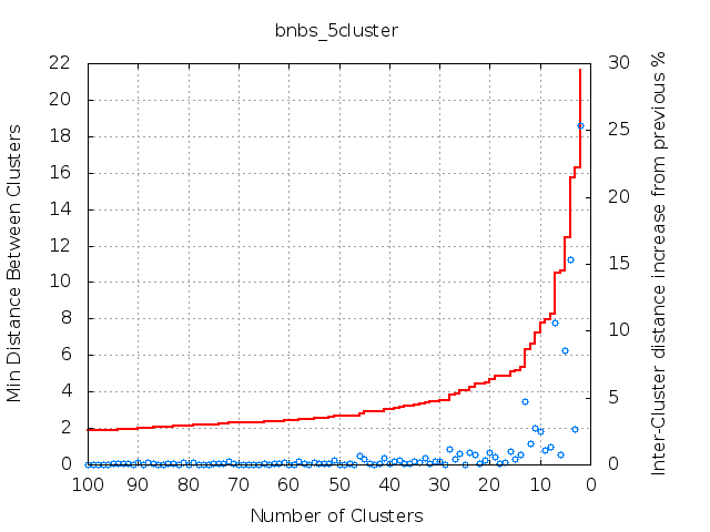 An example can be found in the examples/bnbs/docking directory. In this Barnase/Barstar example, there is a kink when seven clusters are generated, but there is, for example, also a kink when 13 clusters are generated. This shows that the number of clusters depends on the required accuracy and the details of the project.